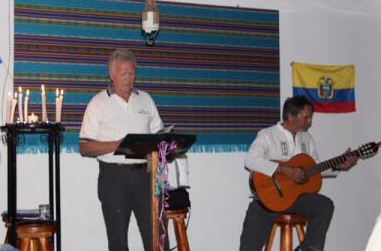 29e récital de poésie, le jeudi 6 février 2014 à 20h à la Casa Sueños Bonitos (Casira) de san Ramón au Pérou. A la guitare : Roly. |